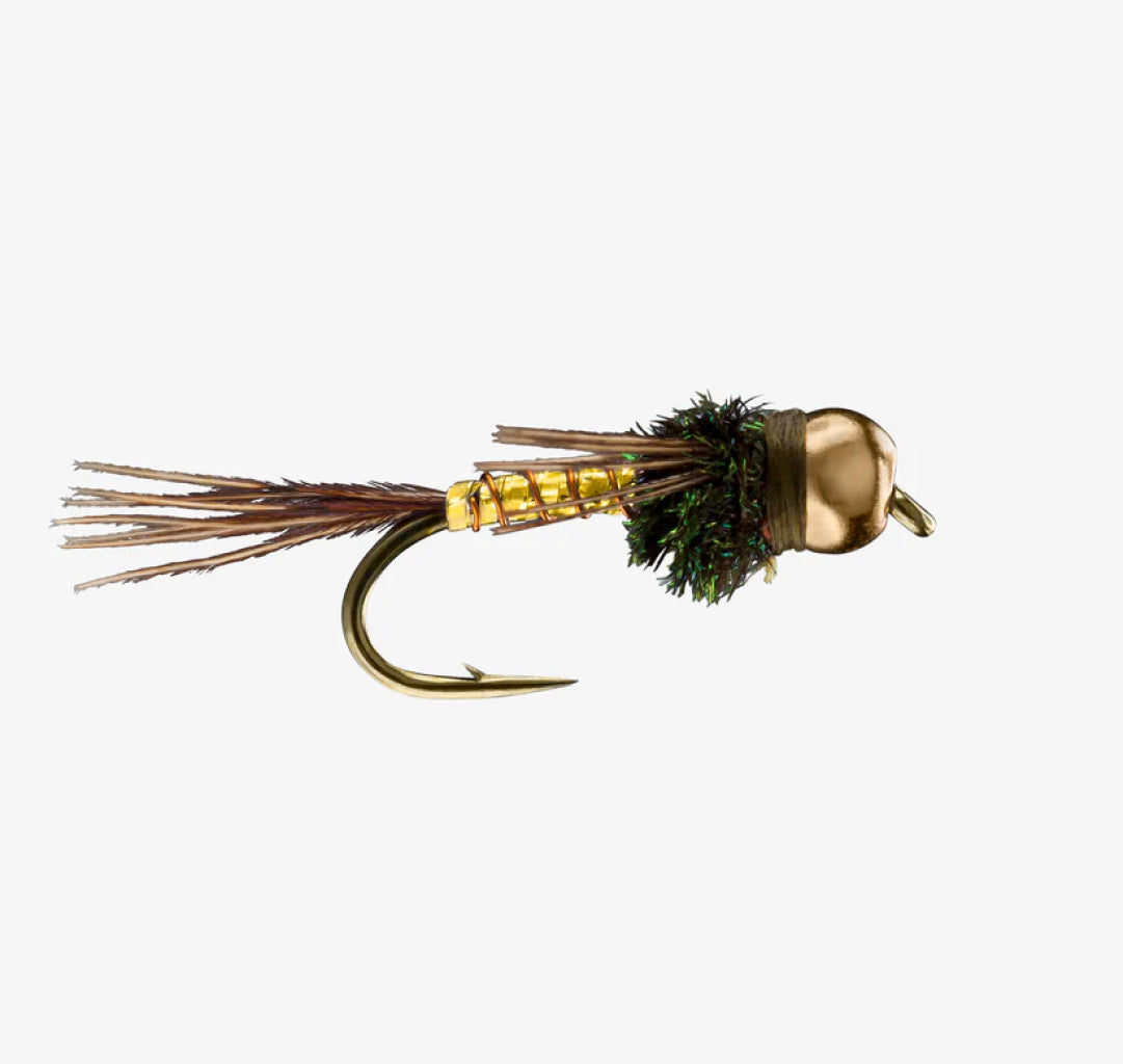 This shiny little attractor nymph replicates all kinds of mayfly nymphs, and is a very good general-purpose nymph pattern. The abdomen is made up of tinsel and wire that gives the fly plenty of sparkle in the water. If you find the more natural colored nymphs are not getting it done, try this flashier pattern.